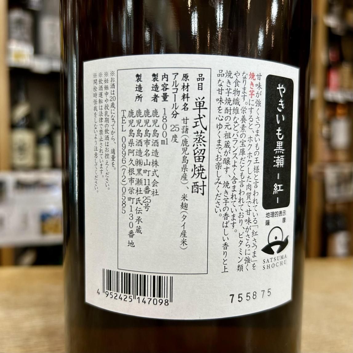 焼き芋焼酎 やきいも黒瀬 紅 1800ml 【鹿児島酒造:鹿児島県】
